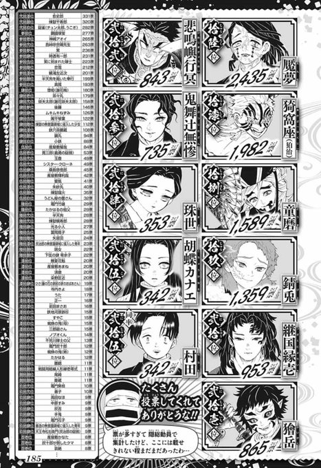今週の 鬼滅の刃 で人気投票が発表されたけど皆は誰に入れる 欄まとめ ジャンプまとめ速報
