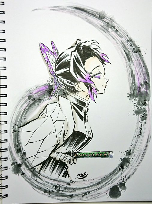 uzivatel こバya4 na twitteru 墨絵 蟲柱 胡蝶しのぶ 鬼滅の刃 胡蝶しのぶ 模写 墨絵 イラスト