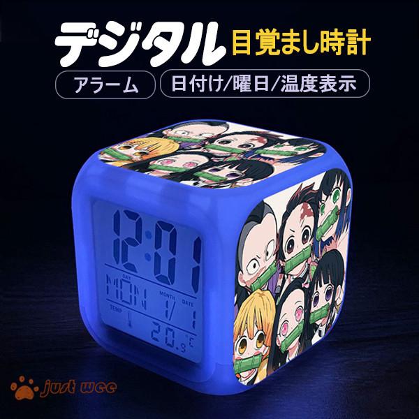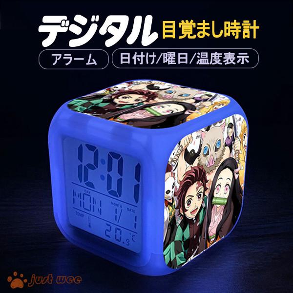 鬼滅の刃 目覚まし時計 光る時計 置き時計 led デジタル時計 卓上時計 七色バックライト おしゃれ 多機能 虹色ライト竈門炭治郎 胡蝶 しのぶ キャラクター