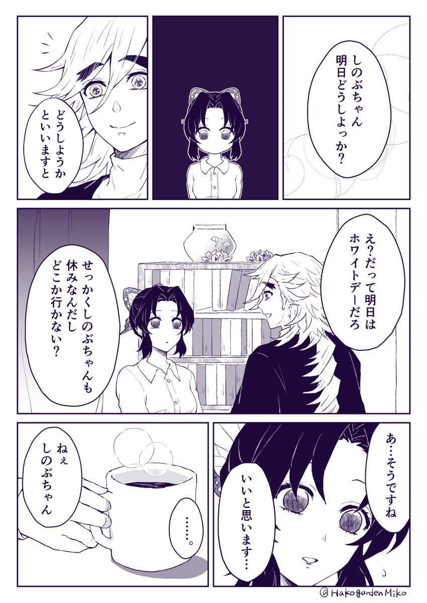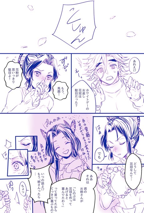 ポリナ on twitter 初めて4ページも漫画描いた 童しのヒーローストーリー 童磨くんとしのぶちゃんが同じバイト先if 童しの 鬼滅の刃 童磨 胡蝶しのぶ イラスト 漫画