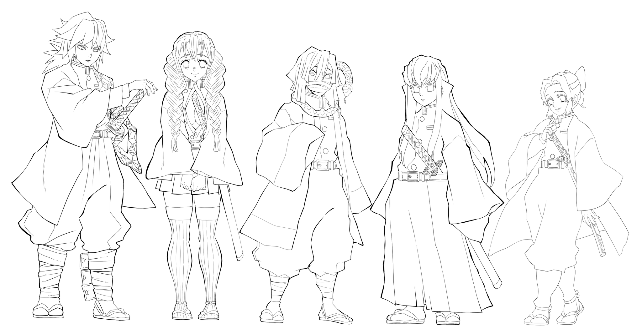 pari c on twitter 線画やっと終わった 最新刊読んだら描きたくなったwww 明日からぼちぼち色塗ります おやすみなさい 鬼滅の 刃 鬼殺隊 柱 イラスト 鬼滅の刃絵描きさんと繋がりたい