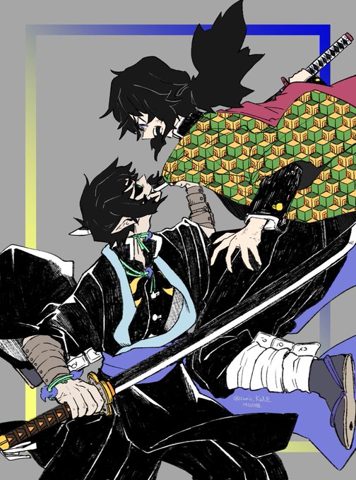 sageasura777 あすら tren twitter 推しの2人 冨岡 煉獄 やっぱりめっちゃかっこいい 鬼滅の刃 鬼滅の 刃イラスト 柱 水柱 炎柱 冨岡義勇 煉獄杏寿郎 イラスト 模写 コピック アニメ