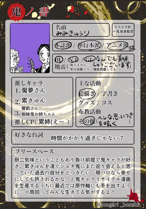 twoucan 鬼滅の刃自己紹介テンプレ の注目ツイート イラスト マンガ