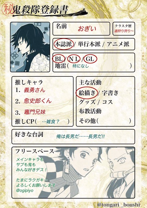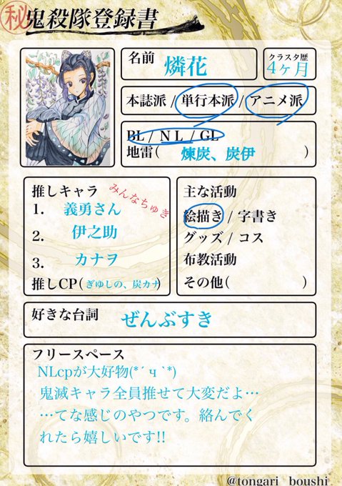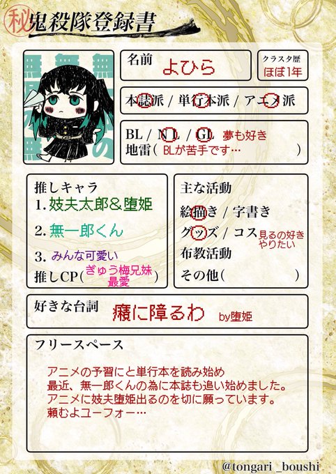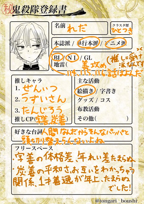 鬼滅の刃自己紹介テンプレ hashtag on twitter