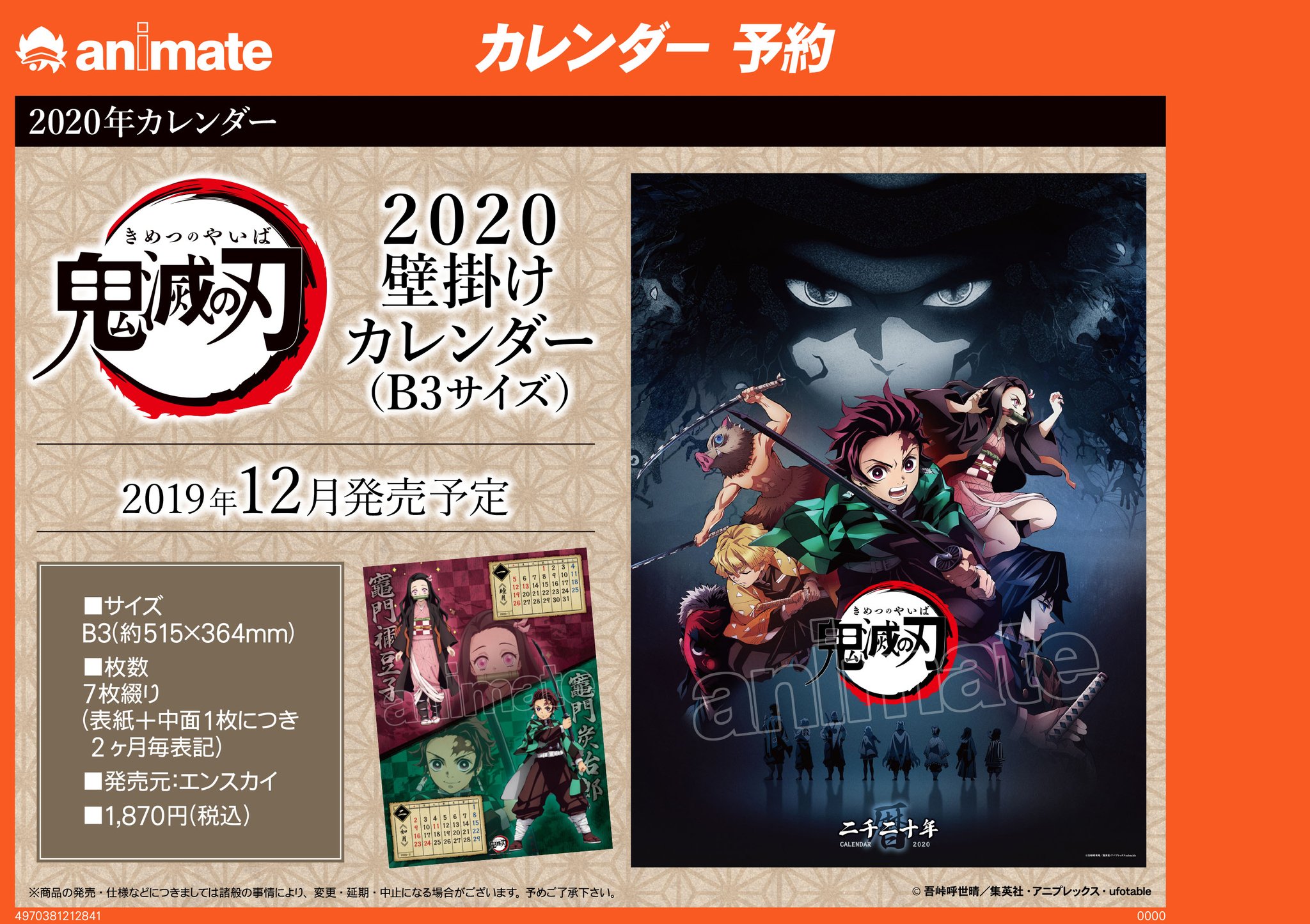 アニメイト町田 on twitter カレンダー予約情報 鬼滅の刃 2020壁掛けカレンダー b3サイズ が12月発売予定 鬼滅の刃 からアニメ絵柄の壁掛けカレンダーが登場マチ 毎月めくるのが楽しみになっちゃうマチね アニ町グッズ予約 オンライン予約 購入