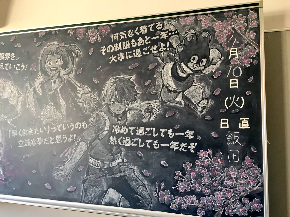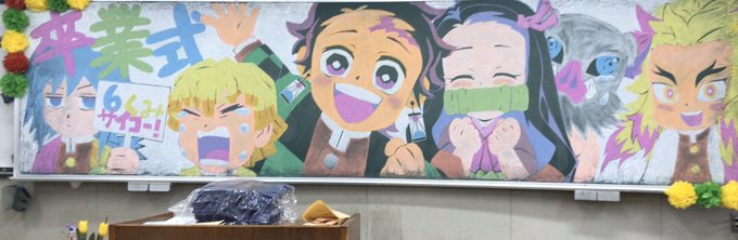 tanaka shinjiro on twitter 今朝のニュースで黒板アートが話題になってましたが うちの卒業式やらの黒板 です 少しでも思い出に残れば と思って描いてます 鬼滅の刃 進撃の巨人 黒板アート 卒業式 君の名は 風神雷神