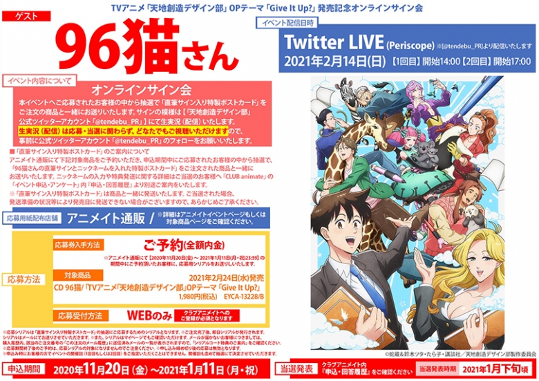 tvアニメ 天地創造デザイン部 opテーマ give it up 発売記念オンラインサイン会 アニメイト
